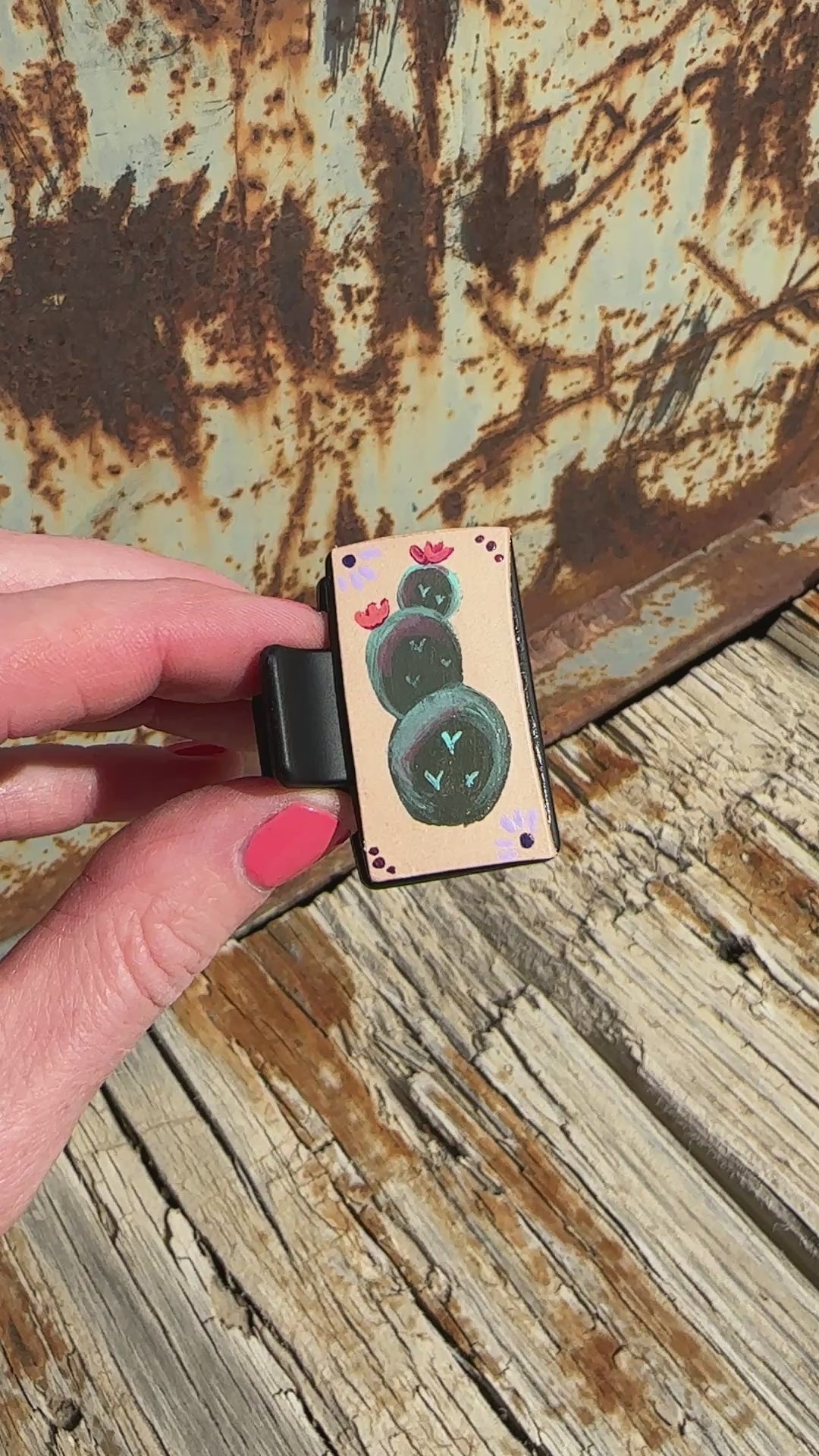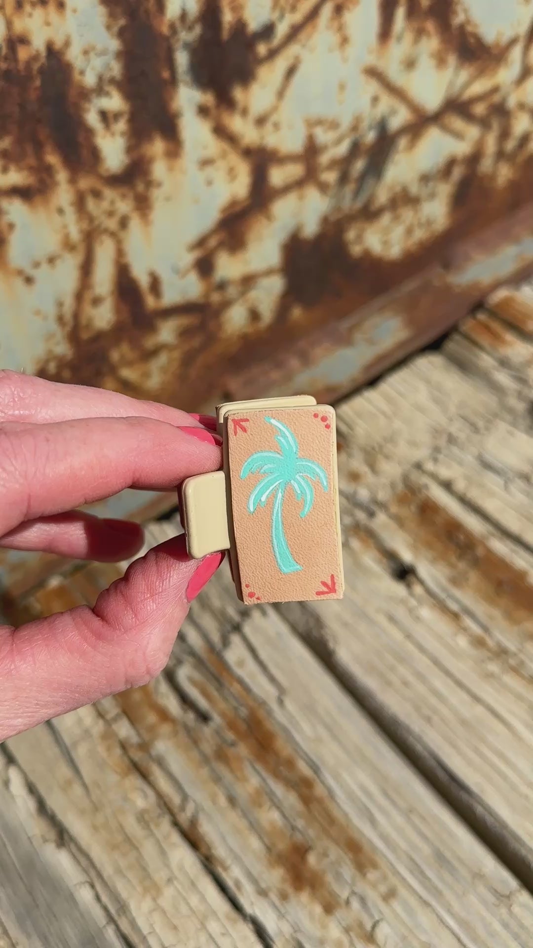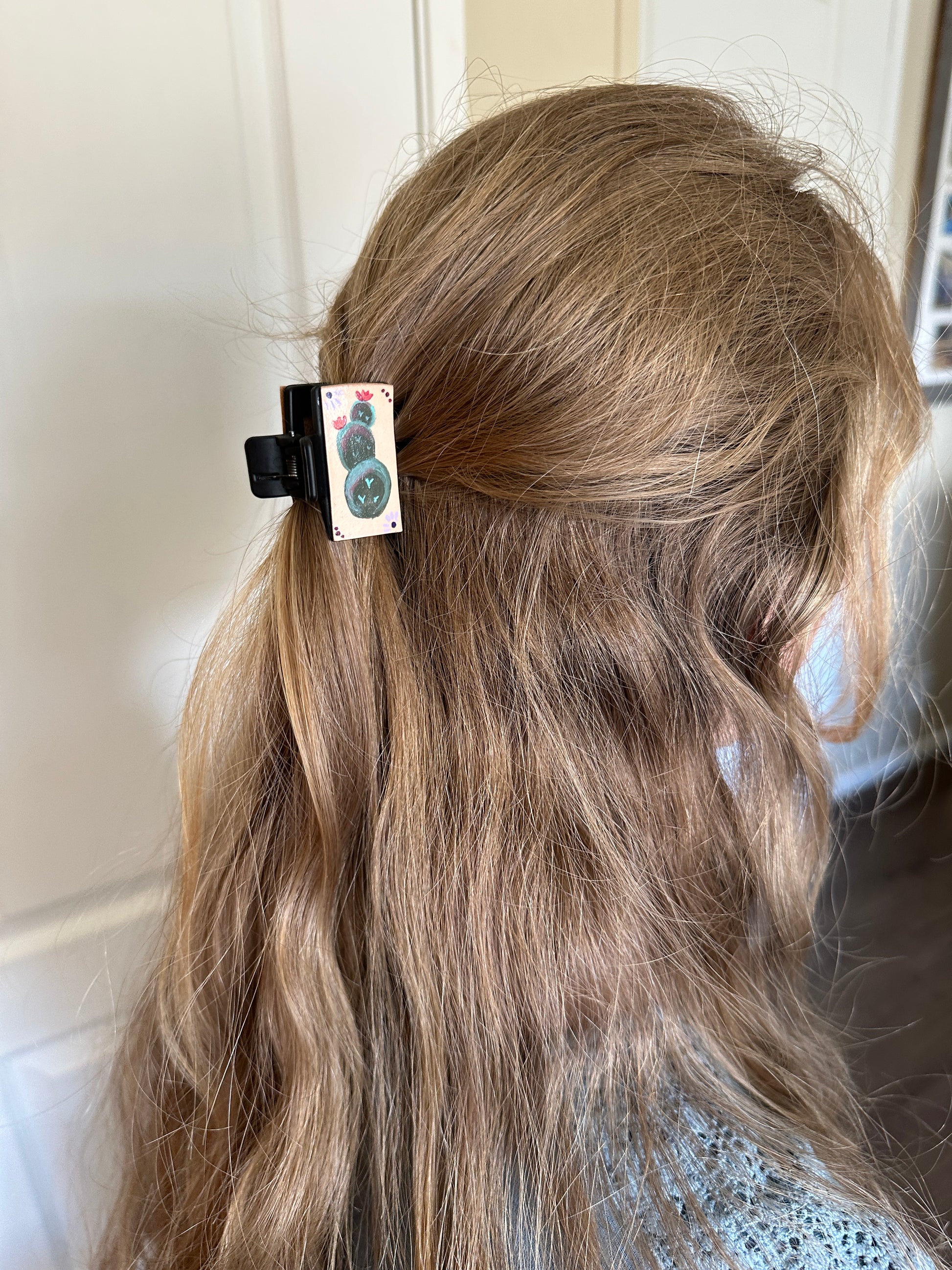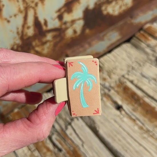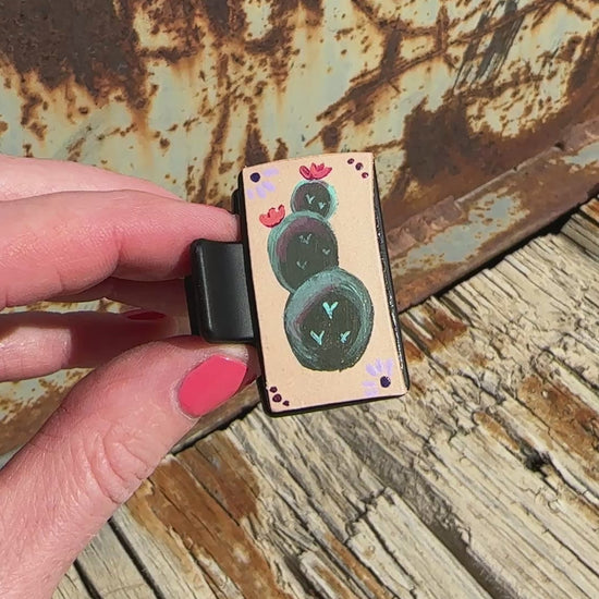 Mini claw clips with hand painted leather.